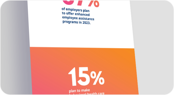 2023 Benefits Trends Page 38 Page 4067% of employers plan to o昀昀er enhanced employee assistance programs in 2023. 15% plan to make behavioral health care 3 more a昀昀ordable. 2023 Benefits Trends: The evolving workplace 38
