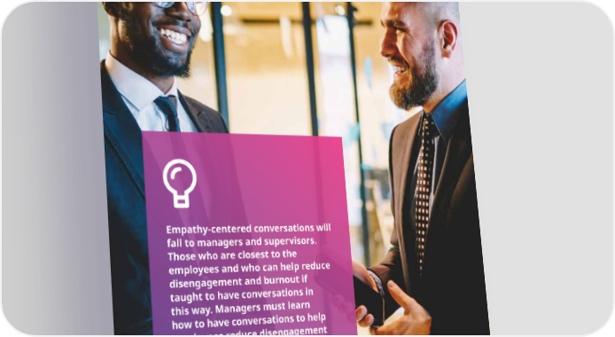 Empathy-centered conversations will fall to managers and supervisors. Those who are closest to the employees and who can help reduce disengagement and burnout if taught to have conversations in this way. Managers must learn how to have conversations to help employees reduce disengagement and burnout. One-to-one and weekly check-ins are a key tool that leaders should use to get ahead of issues and elevate needs. 2023 Benefits Trends: The evolving workplace 32