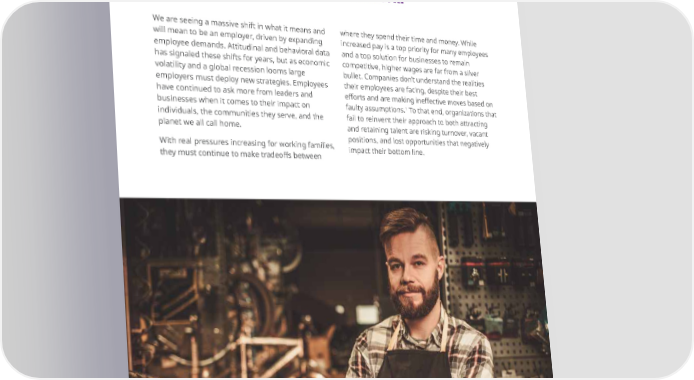 Talent retention and recruitment are becoming a persistent concern for businesses, as they struggle to adapt and adopt practices that re昀氀ect what people really want out of work. We are seeing a massive shift in what it means and where they spend their time and money. While will mean to be an employer, driven by expanding increased pay is a top priority for many employees employee demands. Attitudinal and behavioral data and a top solution for businesses to remain has signaled these shifts for years, but as economic competitive, higher wages are far from a silver volatility and a global recession looms large bullet. Companies don’t understand the realities employers must deploy new strategies. Employees their employees are facing, despite their best have continued to ask more from leaders and e昀昀orts and are making ine昀昀ective moves based on 1 businesses when it comes to their impact on faulty assumptions. To that end, organizations that individuals, the communities they serve, and the fail to reinvent their approach to both attracting planet we all call home. and retaining talent are risking turnover, vacant With real pressures increasing for working families, positions, and lost opportunities that negatively impact their bottom line. they must continue to make tradeo昀昀s between 2023 Benefits Trends: The evolving workplace 10