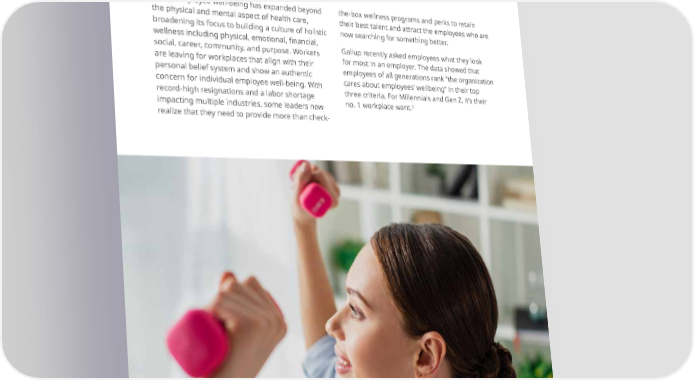 The workforce continues to expect more from their employee experience, especially as it relates to holistic well-being. Today, employee well-being has expanded beyond the-box wellness programs and perks to retain the physical and mental aspect of health care, their best talent and attract the employees who are broadening its focus to building a culture of holistic now searching for something better. wellness including physical, emotional, 昀椀nancial, Gallup recently asked employees what they look social, career, community, and purpose. Workers for most in an employer. The data showed that are leaving for workplaces that align with their personal belief system and show an authentic employees of all generations rank “the organization concern for individual employee well-being. With cares about employees’ wellbeing” in their top record-high resignations and a labor shortage three criteria. For Millennials and Gen Z, it’s their 2 impacting multiple industries, some leaders now no. 1 workplace want. realize that they need to provide more than check- 2023 Benefits Trends: The evolving workplace 36