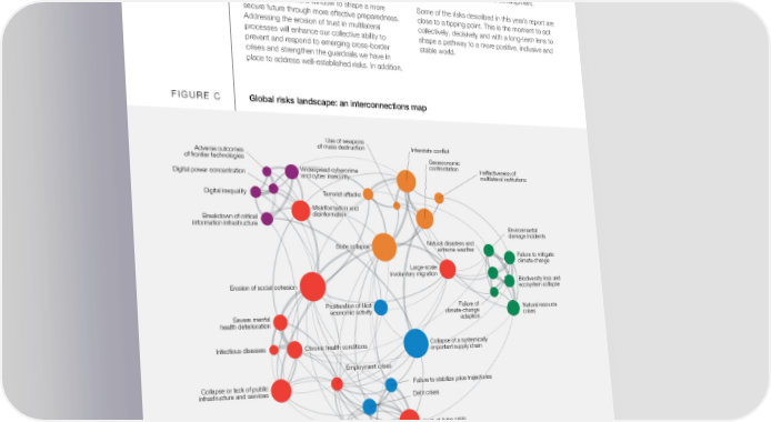 In the years to come, as continued, concurrent leveraging the interconnectivity between global crises embed structural changes to the economic risks can broaden the impact of risk mitigation and geopolitical landscape, they accelerate the activities – shoring up resilience in one area can other risks that we face. More than four in 昀椀ve have a multiplier effect on overall preparedness for GRPS respondents anticipate consistent volatility other related risks. As a deteriorating economic over the next two years at a minimum, with multiple outlook brings tougher trade-offs for governments shocks accentuating divergent trajectories. However, facing competing social, environmental and security respondents are generally more optimistic over concerns, investment in resilience must focus on the longer term. Just over one-half of respondents solutions that address multiple risks, such as funding anticipate a negative outlook, and nearly one in 昀椀ve of adaptation measures that come with climate respondents predict limited volatility with relative – and mitigation co-bene昀椀ts, or investment in areas that potentially renewed – stability in the next 10 years. strengthen human capital and development. Indeed, there is still a window to shape a more Some of the risks described in this year’s report are secure future through more effective preparedness. close to a tipping point. This is the moment to act Addressing the erosion of trust in multilateral collectively, decisively and with a long-term lens to processes will enhance our collective ability to shape a pathway to a more positive, inclusive and prevent and respond to emerging cross-border stable world. crises and strengthen the guardrails we have in place to address well-established risks. In addition, FIGURE C Global risks landscape: an interconnections map Use of weaponsUse of weapons of mass destructionof mass destruction Interstate conflict Interstate conflict Adverse outcomesAdverse outcomes of frof frontier technologiesontier technologies GeoeconomicGeoeconomic confrconfrontationontation Ineffectiveness of Widespread cybercrime Ineffectiveness of Digital power concentrationDigital power concentration Widespread cybercrime multilateral institutions and cyber insecurity multilateral institutions and cyber insecurity Digital inequalityDigital inequality Terrorist attacks Terrorist attacks Misinformation and Misinformation and disinformation Breakdown of critical disinformation Breakdown of critical information infrastructure information infrastructure Environmental Environmental damage incidents damage incidents Natural disasters and State collapse Natural disasters and State collapse extreme weather extreme weather FailurFailure to mitigatee to mitigate climate changeclimate change Large-scaleLarge-scale involuntary migrationinvoluntary migration Biodiversity loss andBiodiversity loss and Erosion of social cohesion Erosion of social cohesion ecosystem collapseecosystem collapse Proliferation of illicit Proliferation of illicit Failure of Failure of Natural rNatural resouresourcece economic activity economic activity climate-change SeverSevere mentale mental climate-change crises crises adaption health deteriorationhealth deterioration adaption Collapse of a systemically Infectious diseases Collapse of a systemically Infectious diseases Chronic health conditions Chronic health conditions important supply chain important supply chain Employment crisesEmployment crises Failure to stabilize price trajectories Collapse or lack of public Failure to stabilize price trajectories Collapse or lack of public infrastructure and services infrastructure and services Debt crises Debt crises Cost-of-living crisis PrProlonged economicolonged economic Cost-of-living crisis downturdownturnn Asset bubble burstAsset bubble burst Nodes Edges Risk influence Relative influence High High Medium Medium Low Low Risk categories Economic Environmental Geopolitical Societal Technological Source World Economic Forum, Global Risks Perception Survey 2022-2023. Global Risks Report 2023 10