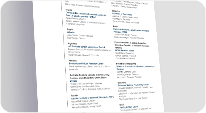 Partner Institutes The World Economic Forum’s Centre for the New Economy and Society is pleased to acknowledge and thank the following organizations as its valued Partner Institutes: Albania Bangladesh Institute for Contemporary Studies, Tirana Centre for Policy Dialogue - CPD Business University and College Dr Fahmida Khatun, Executive Director Helton Cevi, Project Coordinator Dr Khondaker Golam Moazzem, Research Director Artan Hoxha, President of ISB and Administrator of Ratia Rehnuma, Research Associate TBU Chowdhury Fariha, Research Intern Oltjon Valisi, Assistant Project Coordinator Barbados Algeria University of West Indies Centre de Recherche En Economie Appliquée Jonathan G. Lashley, Senior Fellow Pour Le Développement - CREAD Don Marshall, Professor Yacine Belarbi, Director Kenisha Chase, Research Assistant Khaled Menna, Director of Macroeconomics and Economic Integration Benin Institut de Recherche Empirique en Economie Angola Politique - IREEP Jobartis Leonard Wantchekon, President João Freitas, Country Manager Stéphania Houngan, Research Associate Luis Verdeja, Director Plurinational State of Bolivia, Costa Rica, Argentina Dominican Republic, El Salvador, Honduras, IAE Business School, Universidad Austral Panama Eduardo Fracchia, Director of Academic Department INCAE Business School of Economics Ronald Arce, Researcher Martin Calveira, Research Economist Enrique Bolaños, President Octavio Martínez, Director Armenia Economy and Values Research Center Bosnia and Herzegovina Sevak Hovhannisyan, Board Member and Senior School of Economics and Business, University of Associate Sarajevo Jasmina Selimovic, Dean Australia, Belgium, Canada, Indonesia, Italy, Zlatko Lagumdzija, Professor Sweden, United Kingdom, United States Amra Kapo, Associate Professor Dynata Thomas Huff, Senior Project Manager Botswana Steffen Bott, Vice President, Sales Botswana National Productivity Centre Valentyna Chuikina, Associate Account Director Letsogile Batsetswe, Research Consultant and Statistician Austria Zelda Okatch, Information and Research Services Austrian Institute of Economic Research - WIFO Manager Gabriel Felbermayr, Director Christopher Diswai, Executive Director Michael Peneder, Project Lead Alexandros Charos, Survey Expert Brazil Fundação Dom Cabral Bahamas, The Carlos Arruda, Professor of Innovation and The Government and Public Policy Institute, Competitiveness University of the Bahamas Hugo Tadeu, Professor of Innovation Zhivargo Laing, Executive Director Miguel Costa, Research Assistant Jeannie D. Gibson, Policy Assistant Bulgaria Bahrain Center for Economic Development Bahrain Economic Development Board Maria Prohaska, Director Khalid Humaidan, Chief Executive Ivalina Simeonova, Project Manager Nada Al-Saeed, Executive Director Rima AlKilani, Executive Director Fatema Alatbi, Senior Executive Sara Ishaq, Senior Executive Global Risks Report 2023 90