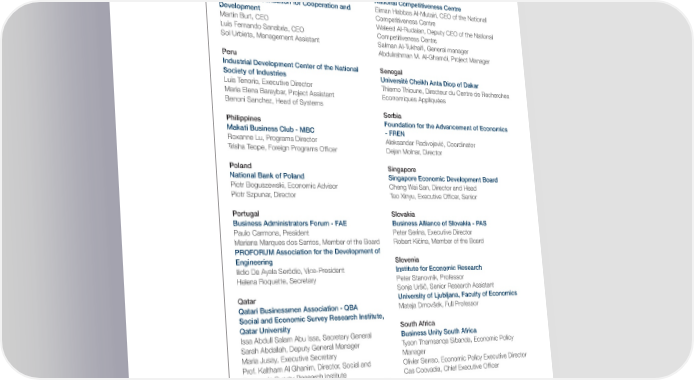 Oman Rwanda National Competitiveness Of昀椀ce - NCO Rwanda Development Board Dr Salim Abdullah Al Shaikh, Acting Chief of NCO Delphine Uwase, Ag. Head of Strategy and Juhaina Saleh Al Balushi, Economic Researcher Competitiveness Department Jawaher Sultan Al Habsi, Business Analyst Kennedy Kalisa, Strategy Analyst Richard Kayibanda, Ag. Chief Strategy and Pakistan Compliance Of昀椀cer Mishal Pakistan Amir Jahangir, Chief Executive Of昀椀cer Saudi Arabia Puruesh Chaudhary, Director Alfaisal University Amna Sabahat Bhutta, Director Mohammed Kafaji, Vice Dean for Quality Assurance and Accreditation Paraguay National Competitiveness Centre Paraguayan Foundation for Cooperation and Eiman Habbas Al-Mutairi, CEO of the National Development Competitiveness Centre Martin Burt, CEO Waleed Al-Rudaian, Deputy CEO of the National Luis Fernando Sanabria, CEO Competitiveness Centre Sol Urbieta, Management Assistant Salman Al-Tukhai昀椀, General manager Abdulrahman M. Al-Ghamdi, Project Manager Peru Industrial Development Center of the National Senegal Society of Industries Université Cheikh Anta Diop of Dakar Luis Tenorio, Executive Director Thierno Thioune, Directeur du Centre de Recherches Maria Elena Baraybar, Project Assistant Economiques Appliquées Benoni Sanchez, Head of Systems Serbia Philippines Foundation for the Advancement of Economics Makati Business Club - MBC - FREN Roxanne Lu, Programs Director Aleksandar Radivojević, Coordinator Trisha Teope, Foreign Programs Of昀椀cer Dejan Molnar, Director Poland Singapore National Bank of Poland Singapore Economic Development Board Piotr Boguszewski, Economic Advisor Cheng Wai San, Director and Head Piotr Szpunar, Director Teo Xinyu, Executive Of昀椀cer, Senior Portugal Slovakia Business Administrators Forum - FAE Business Alliance of Slovakia - PAS Paulo Carmona, President Peter Serina, Executive Director Mariana Marques dos Santos, Member of the Board Robert Kičina, Member of the Board PROFORUM Association for the Development of Engineering Slovenia Ilidio De Ayala Serôdio, Vice-President Institute for Economic Research Helena Roquette, Secretary Peter Stanovnik, Professor Sonja Uršič, Senior Research Assistant Qatar University of Ljubljana, Faculty of Economics Qatari Businessmen Association - QBA Mateja Drnovšek, Full Professor Social and Economic Survey Research Institute, Qatar University South Africa Issa Abdull Salam Abu Issa, Secretary General Business Unity South Africa Sarah Abdallah, Deputy General Manager Tyson Thamsanqa Sibanda, Economic Policy Maria Jusay, Executive Secretary Manager Prof. Kaltham Al Ghanim, Director, Social and Olivier Serrao, Economic Policy Executive Director Economic Survey Research Institute Cas Coovadia, Chief Executive Of昀椀cer Raymond Carasig, Senior Survey Support Specialist South Korea Romania Korea Development Institute Association for Women Entrepreneurship Inho Song, Executive Director, Economic Information Development - ADAF and Education Center The Chamber of Commerce and Industry of Joohee Cho, Head, Public Opinion Analysis Unit Romania Boyoung Han, Senior Reseach Associate, Public Rotaru Cornelia, President Opinion Analysis Unit Rotaru Gela, Business Analyst Savu Cristina, Communication Expert Global Risks Report 2023 94