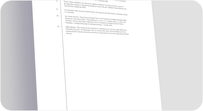 Endnotes 46. V-Dem Institute, Democracy Report 2022: Autocratization Changing Nature?, University of Gothenburg, 2022, https://www.v-dem.net/documents/19/dr_2022_ipyOpLP.pdf; Somer, Murat and Jennifer L. McCoy, “Pernicious polarization, autocratization and opposition strategies”, Democratization, vol 28, 12 Jan 2021; McCoy, Jennifer and Benjamin Press, What Happens When Democracies Become Perniciously Polarized?, Carnegie Endowment for International Peace, 18 January 2022. 47. Buschschlüter, Vanessa, “Brazil election: Lula makes stunning comeback”, BBC, 31 October 2022. 48. Mano, Ana and Anthony Boadle, “Brazil's Bolsonaro Silent on Lula Victory, Transition Talks Begin”, Reuters, 1 November 2022, https://www.reuters.com/world/americas/lula-wins-brazilian-election- bolsonaro-has-not-conceded-2022-10-31/. 49. Lewandowsky, Stephan, et. al, “Is the global decline in democracy linked to social media? We combed through the evidence to 昀椀nd out”, The Conversation, 8 November 2022. 50. Favaro, Marina, Neil Renic and Ulrich Kühn, Negative Multiplicity: Forecasting the Future Impact of Emerging Technologies on International Stability and Human Security, Institute for Peace Research and Security Policy, September 2022. 51. Lai, Samantha, Data misuse and disinformation: Technology and the 2022 elections, Brookings Institute, 21 June 2022. 52. Lee, Amber Hye-Yon, “Social Trust in Polarized Times: How Perceptions of Political Polarization Affect Americans’ Trust in Each Other”, Political Behaviour, vol. 44, no. 3, 18 March 2022, pp. 1533-1544; Carothers, Thomas and Andrew O’Donohue, How to Understand the Global Spread of Political Polarization, Carnegie Endowment for International Peace, 1 October 2019. 53. Walter, Barbara, “Why should we worry that the US could become an 'anocracy' again? Because of the threat of civil war”, The Washington Post, 24 January 2022, https://www.washingtonpost.com/ opinions/2022/01/24/why-should-we-worry-that-us-could-become-an-anocracy-again-because-threat- civil-war/. Global Risks Report 2023 28